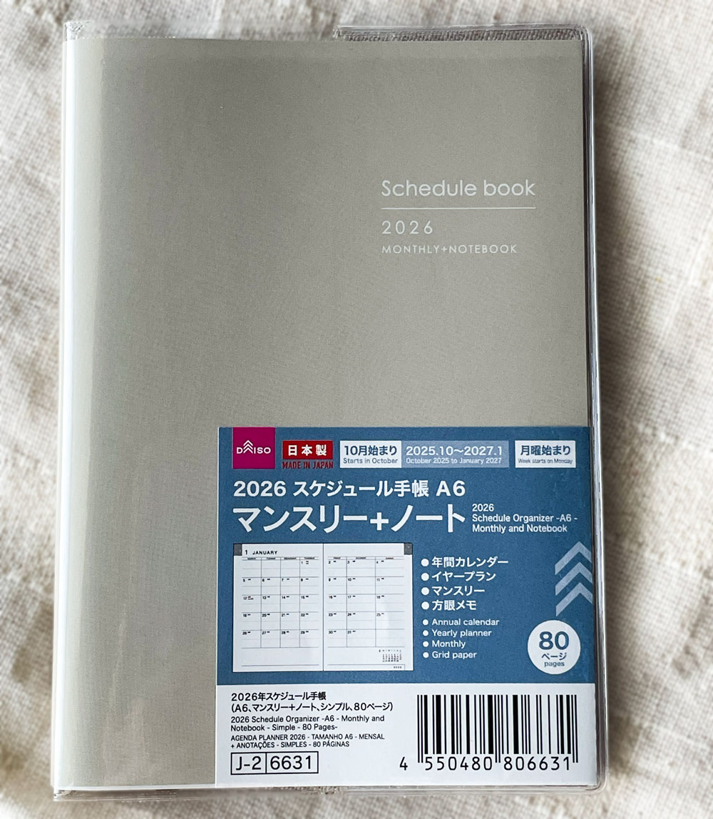 ダイソー2026スケジュール手帳A6-マンスリー+ノート